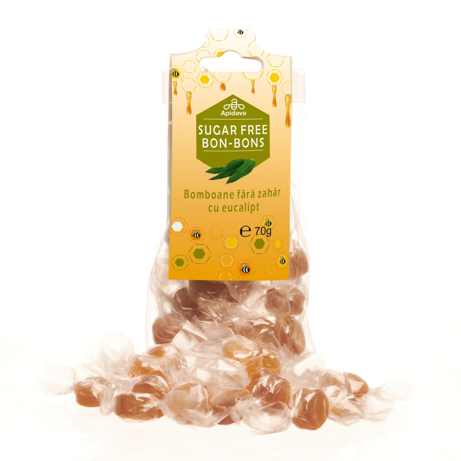 Bomboane fara zahar cu aroma de eucalipt, 70 g, Apidava