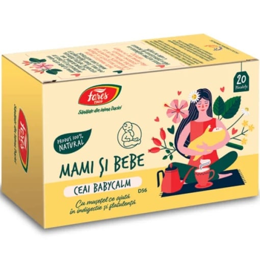 Cauti o solutie naturala si blanda pentru a sprijini confortul digestiv al intregii familii, in special al bebelusilor si mamicilor? Descoperiti Ceai Babycalm Mami si Bebe, 20 plicuri, Fares, un supliment alimentar sub forma de ceai din plante, conceput cu grija pentru a oferi sustinere si echilibru digestiv atat celor mici, cat si mamelor.